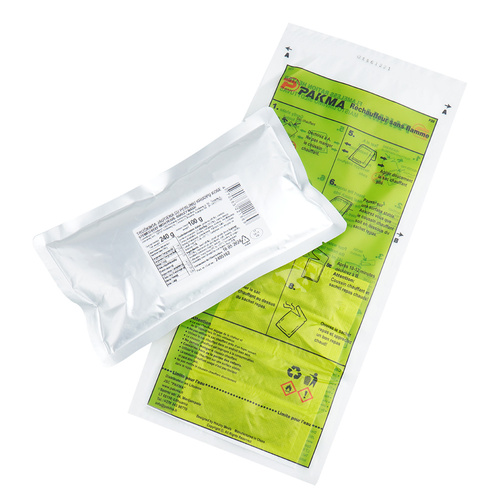 Do podgrzania potrawy służy bezpłomieniowy podgrzewacz chemiczny. Instrukcja jego obsługi w języku polskim znajduje się w pudełku. Aby przygotować gorące danie wystarczy tylko 10-15 minut i to niezależnie od panujących warunków.